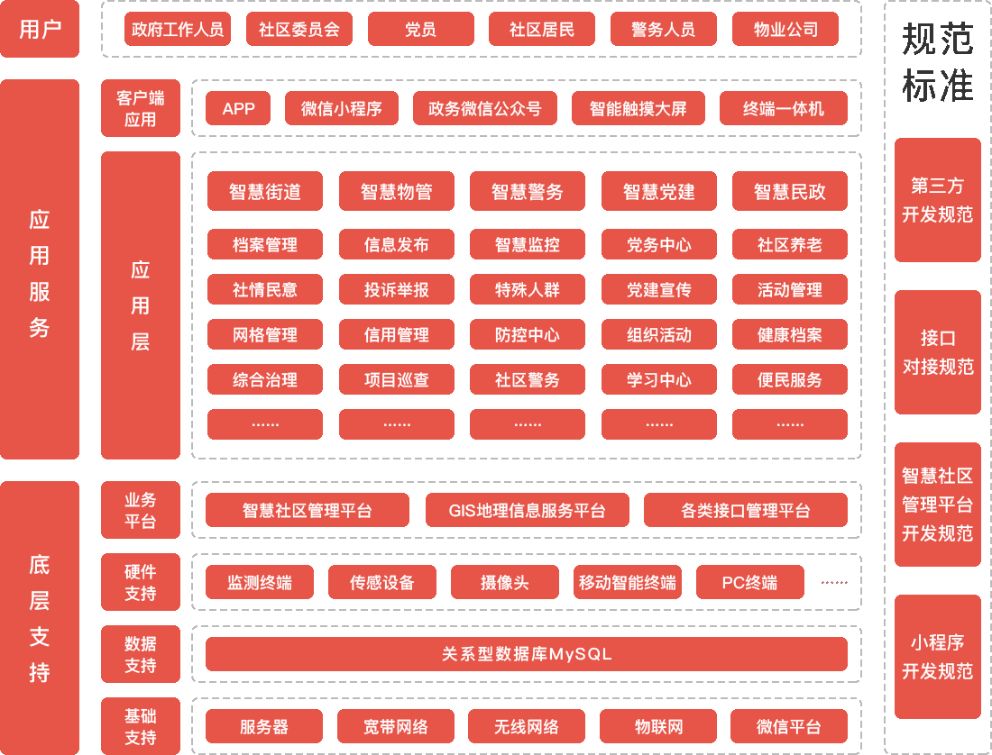 以智能、人文、服務(wù)為理念,統(tǒng)籌各類服務(wù)資源,建設(shè)“精細(xì)化、人文化、社會(huì)化、信息化、規(guī)范化”,同時(shí)涵蓋“社會(huì)管理。社區(qū)服務(wù)、社區(qū)建設(shè)、智慧黨建、公共服務(wù)、社區(qū)安全”等一體化、智能化、數(shù)字化的服務(wù)管理平臺(tái)。社區(qū)社區(qū)居民、企事業(yè)單位、社區(qū)組織的需求,推進(jìn)社區(qū)服務(wù)進(jìn)一步向居民區(qū)延伸,使政務(wù)行政管理單位月社區(qū)居民緊密互聯(lián),將社區(qū)管理和單位管理相結(jié)合,創(chuàng)新深化信息公開(kāi)方式,提升社區(qū)政務(wù)服務(wù)智能化水平。